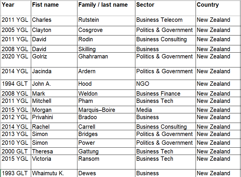Kissinger is linked to New Zealand via his role as co-founder of the World Economic Forum, and the key role he played in the Young Global Leaders Program, which former Prime Minister Jacinda Ardern joined in 2014. Other Young Global Leaders, listed at the Malone Institute WEF Project, are: